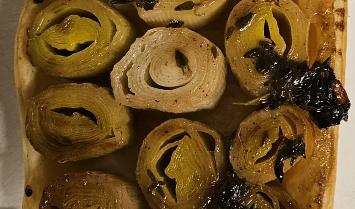 Prei Tarte Tatin met Skrei en Soubisesaus -1110-